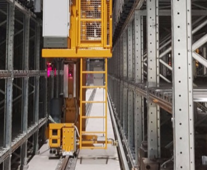 They consist of a sliding elevator that moves on rails between two rows of shelving with very small aisle dimensions. The gripper, which is placed on the lift, is usually composed of two telescopic forks.